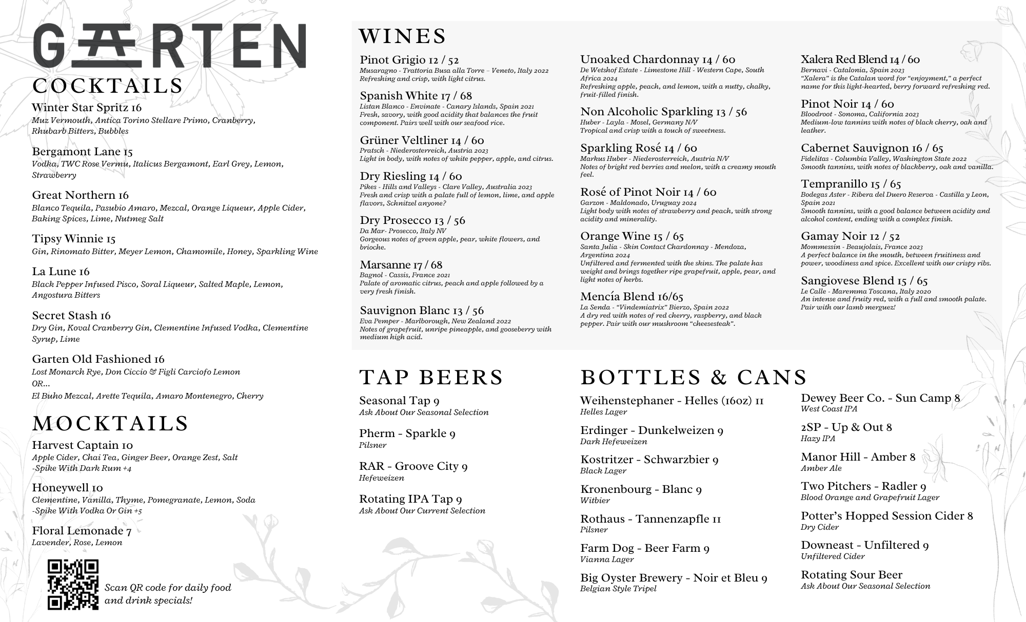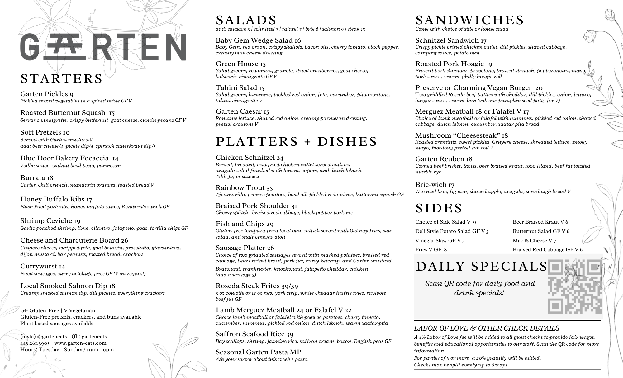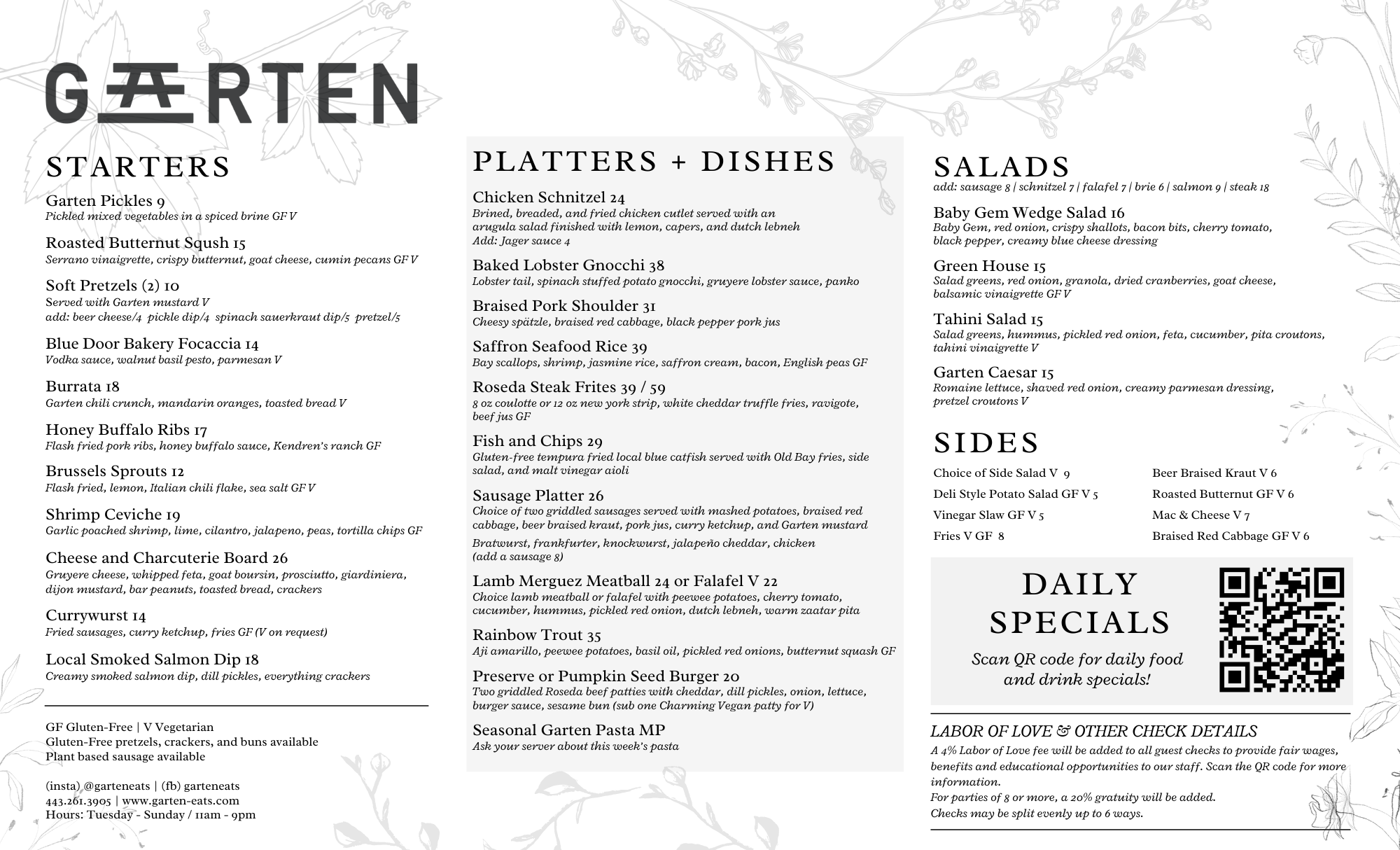 Garten’s Brunch Menu changes weekly! You can find this week’s offerings on our Daily Specials page.